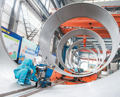 日前,在江苏省张家港经开区(杨舍镇)的张家港富瑞深冷科技有限公司生产车间内,工人在赶制清洁能源低温装备产品,满足国际市场需求。