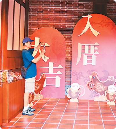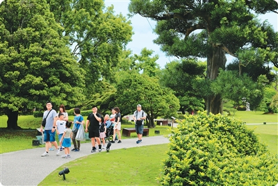 图为游人在成美文化园游览。
