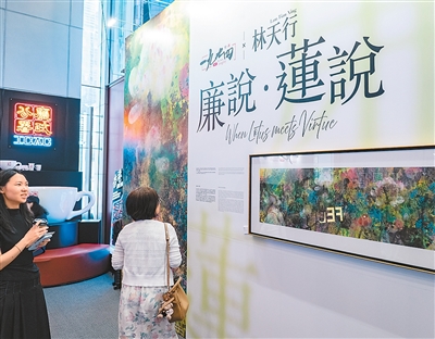 近日,香港廉政公署“一九七四”咖啡厅首次举办联名艺术展《廉说·莲说》,展出香港水墨画艺术家林天行以莲花为主题的画作,以艺术语言推广廉洁理念,响应香港特区政府提出的“纪律先锋巡礼”旅游项目计划,为市民和游客提供全新的游览体验。图为观众参观展览。