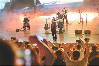 开幕当晚7点,被树木环绕的绿心露天剧场化身“光影森林”,舞台音响与林间风声交融成自然声场,随着浑厚的呼麦声划破天际,以民族摇滚风格享誉海内外的杭盖乐队闪亮登场。从《漂亮的蒙古马》《酒歌》《鸿雁》等加以改编的蒙古族民歌,到《上海产的半导体》等先锋实验音乐,杭盖乐队用极具特色和感染力的音乐与观众对话,音乐时而热烈酣畅,时而静谧辽阔,将观众带到了美丽的草原。夜色渐浓,舞台灯光投射到树木上,与星空交相辉映,化为流动的幕布。每曲唱毕,现场掌声欢呼声不断,沸腾了节日之夜。