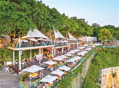 近年来,重庆充分发挥山城夜景、滨江岸线、后街支巷、楼宇天台等特色优势,创造特色消费新空间,并不断丰富消费业态、提升消费体验,有效激活市场潜力。图为消费者日前在重庆南山一火锅店用餐。