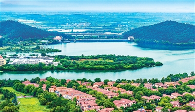 6月10日,江苏省南京市溧水区卧龙湖畔风光秀丽,民居与绿水青山构成一幅生态宜人的夏日画卷。