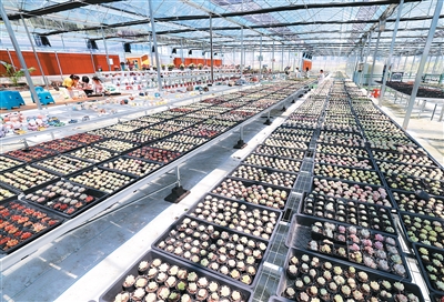 图为游客近日在寿宁县一家多肉种植基地选购多肉植物。