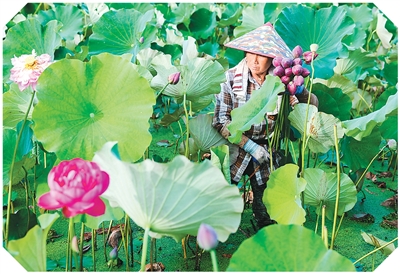 浙江省金华市武义县柳城镇是当地著名的荷花之乡。位于柳城镇的十里荷花共富工坊通过“基地+合作社+农户”模式,提供荷花种苗给村民种植,打通荷花种植、产品加工、产品包装、直播带货等全产业链,打造“宣平贡莲”地方特色品牌,带动周边各村数百户村民在家门口增收致富。