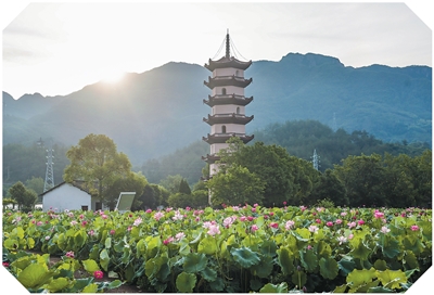武义县柳城镇十里荷花景区。该景区是十里荷花共富工坊荷花和莲子的主要产地。