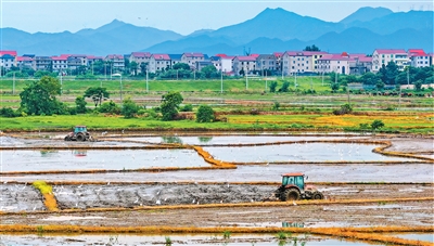 日前,江西省丰城市各乡镇及时调配农机,备好化肥、种子等农资物品,组织村民做好夏种作业,为全年粮食稳产增收夯实基础。图为丰城市荣塘镇北湖村,农机手驾驶农机翻耕土地。