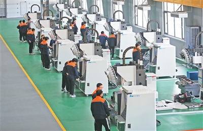 沈阳工学院与武汉华中数控股份有限公司共建沈工—华中数控“一带一路”订单班,联合培养行业急需的“专业+俄语”高素质应用型人才。图为订单班同学在实训基地操作数控机器。