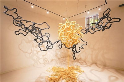 这段时间,一场名为“未织之境”的主题展吸引了来自各地的游客,展览展出了国内外艺术家与当地村民共创的艺术作品,涵盖竹编、棕编、畲族彩带编织等非遗技艺,让艺术风吹进了大山深处。指着其中一件作品,松庄村村民徐家美很自豪:“这是我编的竹篮,居然也被摆放在美术馆里当作艺术品,我也算是半个艺术家了。”