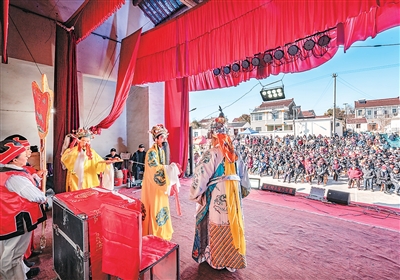 江苏省南京市晶桥镇甘戴村,当地群众在观赏黄梅戏演出。