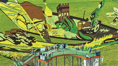 近年来,在我国最大垦区北大荒集团,每到夏季,遍布垦区的稻田画成为人们休闲打卡的好去处。垦区干部群众以稻田画为依托,积极发展农文旅结合产业,稻田画成为融合发展的“新名片”。