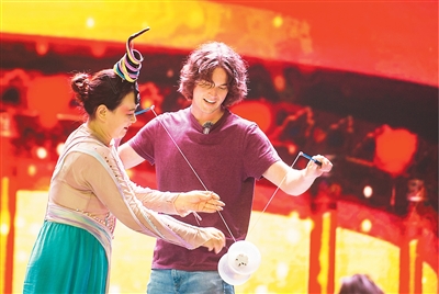 河北沧州是著名杂技之乡。近日,在沧州吴桥杂技大世界,外国游客体验杂技“抖空竹”。