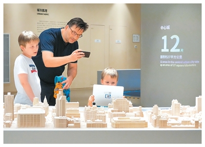 上海城市规划展示馆被中外游客誉为“城市之窗”。近日,外国游客在馆内观看城市规划与建设沙盘模型。