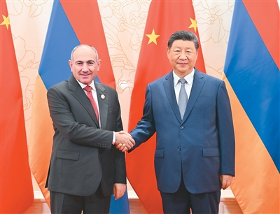 习近平强调,双方要高质量共建“一带一路”,加强互联互通,推进教育、科技、文化、旅游等交流,为两国人民创造更多福祉。中方支持亚美尼亚加入上海合作组织,愿同亚方一道,践行真正的多边主义,携手推动构建人类命运共同体。
