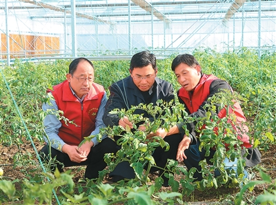 山东省东营市河口区六合街道充分挖掘盐碱地开发利用潜力,探索“盐碱地+特色农业种植”模式,大力推广大棚种植技术,建设现代设施农业产业园,辐射带动周边24个村庄发展,有效拓宽农民增收致富渠道,助力乡村全面振兴。图为农技专家在当地农业大棚对改良番茄进行花期调查及样本采集。