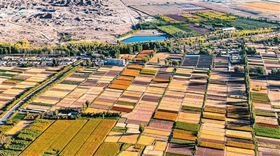 近年来,甘肃省张掖市高台县采取工程固沙、生物固沙、围栏封禁相结合的治理模式,累计完成沙化土地治理28.26万亩。随着荒漠化土地面积大幅缩减,高台县积极发展特色农业,种植12万亩制种玉米、6万亩红辣椒,建成以葡萄、优质梨等为主的林果产业基地9.73万亩,产值达2.1亿元。图为位于高台县北部的农田。