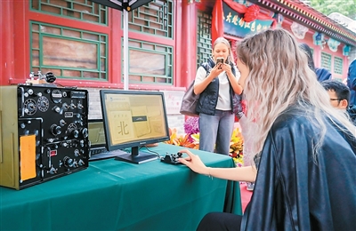 红色体验颇受人们关注。游客在八大处红色电波展室,可以坐在老式发报机前,亲手破译密电码,还能敲击按键发送“祝福祖国”的电波,完成体验后可领取限量版红色语录帆布包。展室内,学生志愿者用稚嫩却认真的声音讲述红色电波背后的故事。北京邮电大学的留学生在“小小讲解员”的带领下,聆听革命年代“电波传信念”的故事,动手体验摩尔斯电码破译,比对破译图,成功解出“祝福祖国”电码后,与“小小讲解员”击掌庆祝。在发报区,留学生按“电码对照表”操作发报机,感受“指尖传祝福”。他们此前仅从书中了解中国历史,通过此次亲手“发报”了解到红色电波背后的中国故事。