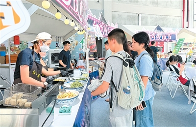 香酥可口的凤梨酥、韵味醇厚的乌龙茶、焦香脆嫩的蚵仔煎、香气四溢的大肠包小肠……国庆中秋长假期间,浙江省瑞安市举办台湾特色市集,让游客一站式品尝地道的“宝岛”美食风味。图为游客在选购小吃。