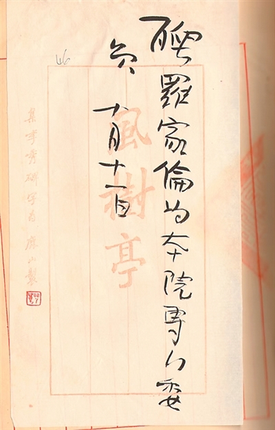 奉贵院第六六号公函,辱聘为专门委员。以伦不学,何克当此?况清华离城辽远,恐难有积极贡献。但既荷雅命,又加以个人未离历史研究工作,如有可以尽力于学术方面者,当竭其有限之知识以奉命也,专此奉覆,以答盛意!