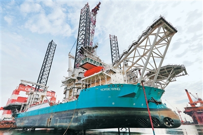 10月15日,全球首座吊装能力突破三千吨级的全直流供电风电安装船——“北欧之风”号在山东烟台交付,填补了全球超大型全直流风电安装船的技术空白。