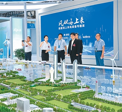 10月16日,以“福海扬帆 绿动领航”为年度主题的2025世界航海装备大会在福建省福州市开幕。大会同期还举办2025第三届中国海洋装备博览会等多场活动。图为与会人员正在展区进行参观。