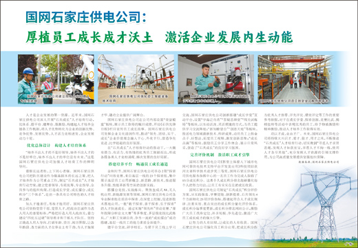 人才是企业发展的第一资源。近年来,国网石家庄供电公司深入开展“石共成长”人才培育行动,优体系、搭平台、建舞台、强激励,构建起人才培养全链条工作机制,将人才优势转化为企业的创新优势、竞争优势、发展优势,人才活力竞相迸发,企业发展动力十足。