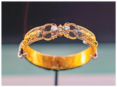 2024年12月6日,“古波斯的荣耀——伊朗文物精华展”在新疆维吾尔自治区博物馆开幕。图为展出的金手镯。