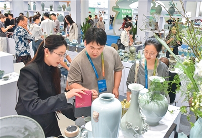 2025中国景德镇国际陶瓷博览会日前在江西省景德镇市陶博城举办。本届瓷博会汇集了国内各大产瓷区和传统名窑精品,以及来自全球30多个国家的知名品牌。博览会共设置了国际品牌陶瓷展区、日用陶瓷品牌展区等12个展区,展览总面积达14万平方米。图为人们在参观选购陶瓷产品。