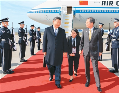 本报韩国釜山10月30日电(记者莽九晨、杨翘楚)当地时间10月30日上午,国家主席习近平乘专机抵达韩国,应大韩民国总统李在明邀请,出席亚太经合组织第三十二次领导人非正式会议并对韩国进行国事访问。