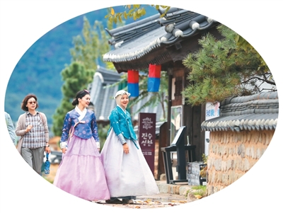 游客在韩国庆州保留朝鲜时代原貌的古村良洞村参观。