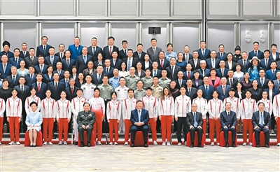 本报广州11月9日电 在第十五届全国运动会即将开幕之际,中共中央总书记、国家主席、中央军委主席习近平9日下午在广州亲切接见全国群众体育先进单位、先进个人代表和全国体育系统先进集体、先进个人代表,向他们表示热烈祝贺,勉励他们奋力拼搏、再创佳绩,为建设体育强国作出新贡献。