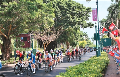 十五运会自行车(公路)比赛男子个人赛11月8日上午在粤港澳三地举行。赛事赛道全程231.8公里,车手从广东珠海的情侣路出发,途经港珠澳大桥至澳门、香港,然后折返珠海。其中香港赛段为55.8公里。图为比赛车队在香港骑行期间,观众挥舞旗帜呐喊助威。