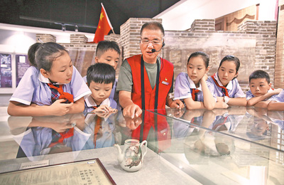 7月28日,绿树掩映的江西新余市赣西抗战博物馆内,渝水区“老兵宣讲团”成员黄炳荣为小朋友讲解赣西抗战故事。八一建军节到来之际,渝水区组织老兵宣讲员走进博物馆,为青少年讲述历史故事,激发爱国热情。