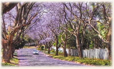 如果你在9月到11月间来南非行政首都比勒陀利亚,一定不能错过蓝花楹盛开的林荫大道(见图,吕强摄):城内7万多株蓝花楹绽放,远远望去,连绵的花海如同蓝紫色云雾,萦绕整座城市。蓝花楹寓意智慧和知识,盛开的季节正值南非考试季,如果花瓣落到学生身上,将被视作考试顺利的好兆头。它的花期又恰逢当地早春时节,因而也象征着重生、活力和创造力。