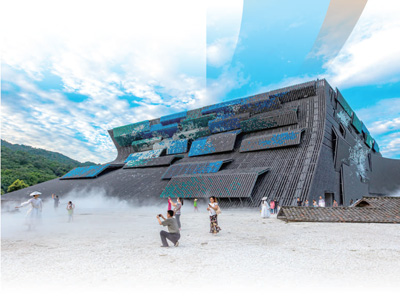 “只有峨眉山”演艺项目的室外剧场,游客正在参观打卡。 |