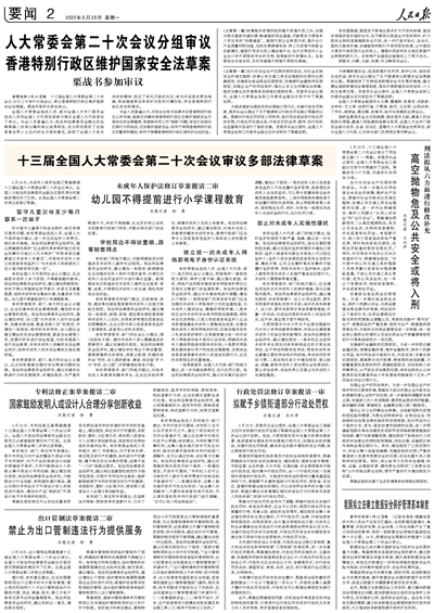 人大常委会第二十次会议分组审议香港特别行政区维护国家安全法草案