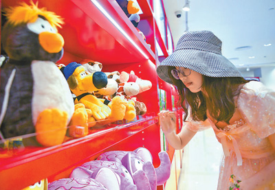 7月1日,海口日月广场免税店内,顾客正在选购毛绒玩具。 |