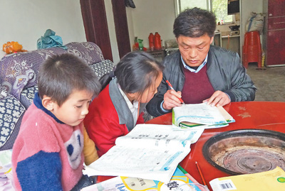 疫情防控期间,湖北竹山县楼房沟村小学教师卢坤山到学生家中辅导功课。 |