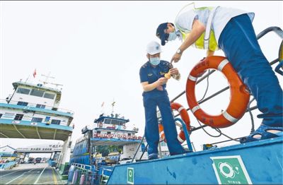 为切实做好水上交通运输安全监管工作,维护船上人员安全,连日来,江苏常州海事局组织执法人员绷紧安全弦,对辖区渡运船舶开展安全检查,提高渡运水域巡查驻守频次,保障人民群众安全出行。图为执法人员检查船用消防器材、救生设备的保养维护情况。