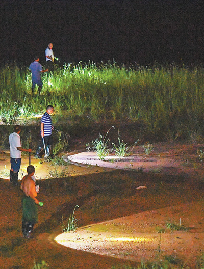 11日,湖南岳阳市君山区的洞庭湖大堤上,抗洪人员在巡堤查险。 |