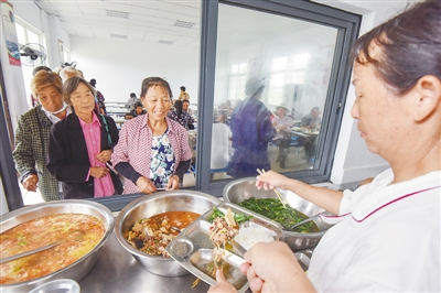 13日,湖北荆州市董场小学安置点,预分洪区转移出来的群众正在就餐。 |