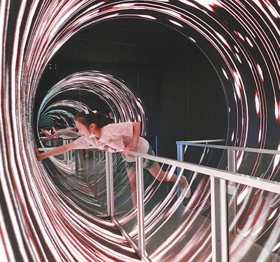 7月18日, 一名女孩在江苏南京科技馆的“眩光通道”里玩耍。暑假期间,许多小朋友在家长的陪伴下来到当地的科技馆,参观各类项目展陈,参与科普游戏活动,拓宽视野、增长知识。
