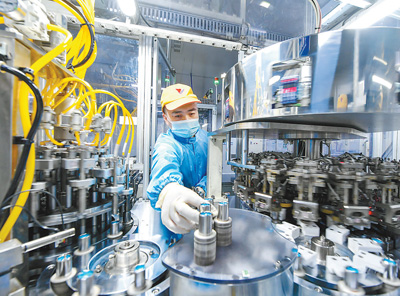 7月20日,浙江省长兴县天能帅福得能源股份有限公司的工人正在赶制新能源锂电池,这些产品将出口到“一带一路”沿线国家和地区。