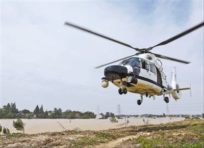 22日,安徽合肥市庐江县,警用直升机飞往灾区救援群众。 |