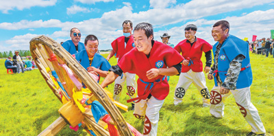 6月17日,黑龙江讷河市兴旺鄂温克民族乡嘎布喀草原上,鄂温克族同胞正在进行民族体育运动,吸引了不少游客驻足观看。 |