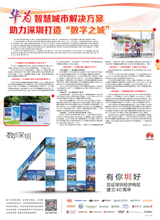 领先的技术能力、有效解决问题的数字平台、活跃的智慧城市创新生态、为客户服务的华为精神……华为在深圳的数字化大潮中成长,也在持续为深圳智慧城市建设提供解决方案。深圳的发展,是中国改革开放历程的缩影。深圳的创新,将有机会为城市数字化发展探索出一个可复制可持续的模型。