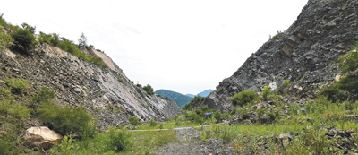 西大山本应是山脊的地方变成了绵延数百米的山谷,山谷两侧裸露着岩石。 |