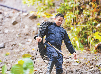 阿旺背着光缆在查找线路断点。 |