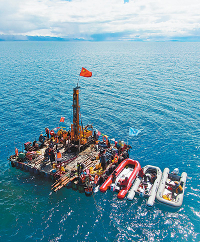纳木错水上钻探平台。 |