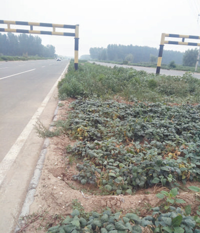 河北邯郸市经济技术开发区翠德路建成通车已有三四年时间,但是,这条道路中间的绿化带迟迟没有种植。由于长期闲置,绿化带已经被周边村民开垦为农田,种上了玉米、棉花、豆类等农作物(如图)。