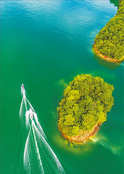 8月11日,浙江杭州淳安县有关部门对千岛湖沿湖地带建设项目、涉水环保等方面情况进行联合巡查和水质检测。